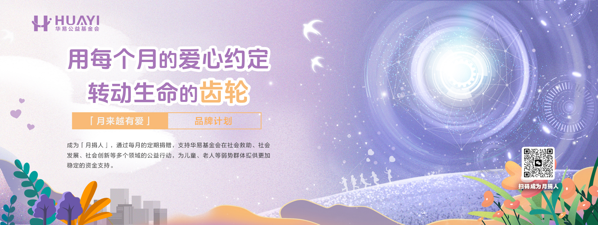 通过每月的定期捐赠,支持华易基金会在社会救助、社会发展、社会创新等多个领域的公益行动,为儿童、老人等弱势群体提供更加稳定的资金支持。